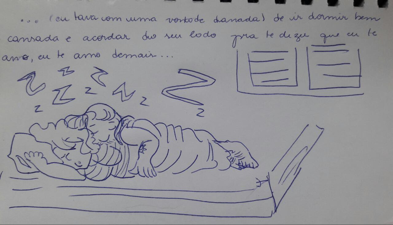 Eu tenho dormido tão profundamente. Eu tenho acordado com a sensação boa de quem dormiu no sofá e magicamente acordou na cama. Eu tenho sentido, adulta e na minha própria casa, a paz de espírito do meu sono infantil. É como se no abraço dele não tivesse como alguma coisa me atingir. Nem meus pesadelos. Nem a ansiedade que carrega com ela a insônia. Nada. Eu durmo, capoto: é como se eu pudesse explodir de gratidão por um abraço representar a volta a uma sensação que eu achei impossível reconstruir.