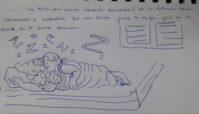 Eu não sabia como seria, não com ele. De fato, ele dorme depois de mim e acorda depois, mas ajeitou seu horário para, pelo menos - ainda que não durma - deitar comigo. E, ali, deitado, ele me embala o sono, lendo ou assistindo alguma coisa, mas comigo.